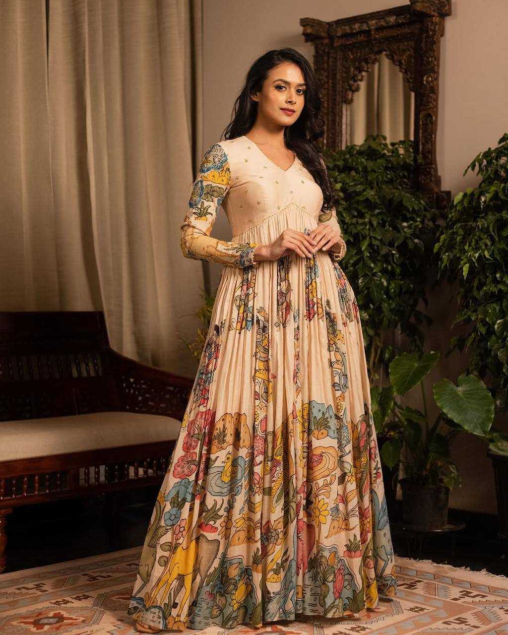 Chinon KESH485 56 Gowns Wholesale Printed Gowns Anarkali Gown Long Gowns