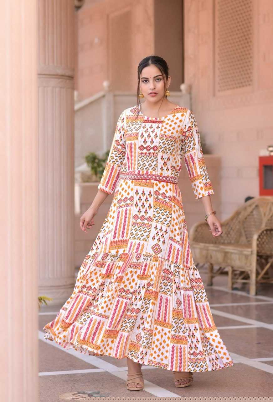 Cotton RIN207 3088 Gowns Wholesale Printed Gowns Fancy Gowns Long Gowns
