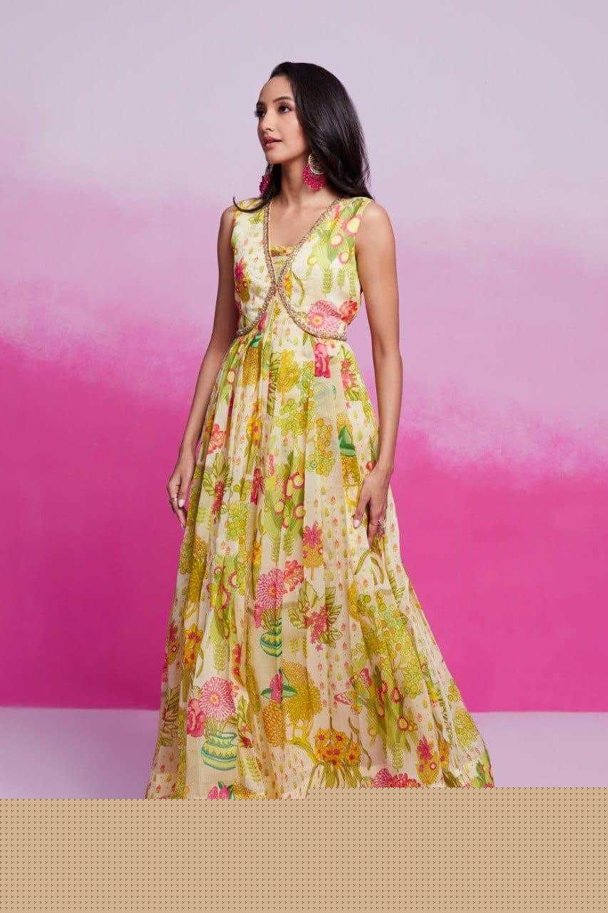 Organza RIN197 New Printed Gown Gowns Wholesale Printed Gowns Fancy Gowns Off-Shoulder Gowns