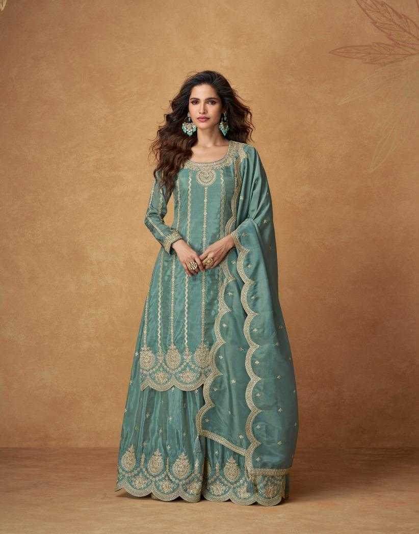 Shimmer silk RIN184 SAUMYA Suits & Dresses Wedding Collections Festive Collections Wholesale Palazzo Suit Ladies Silk Suit Designer Suits