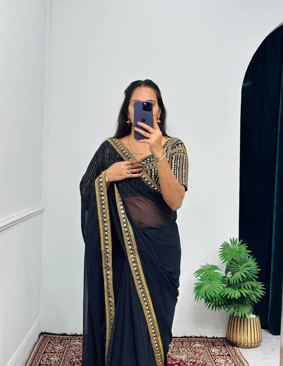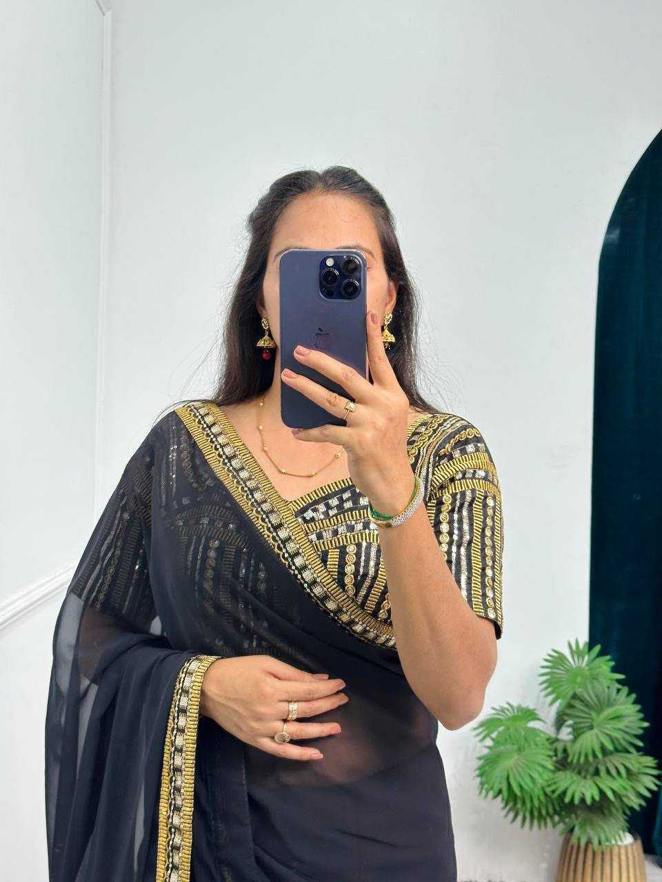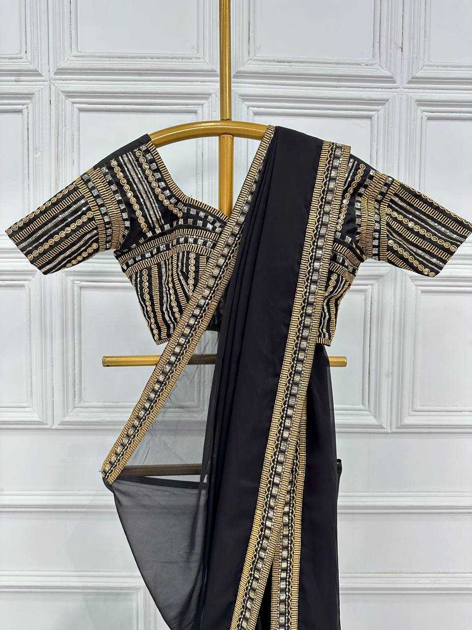 Faux Georgette RIN215 468 Sarees Bollywood Collections Wholesale Fancy Sarees Embroidered Sarees Lace Border Sarees Jannat Zubair Rahmani