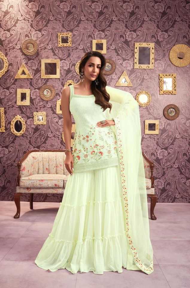 Georgette RIN197 MALAIKA ARORA-001 Suits & Dresses Wedding Collections Bollywood Collections Wholesale Georgette Suit Malaika Arora Sarees Designer Suits